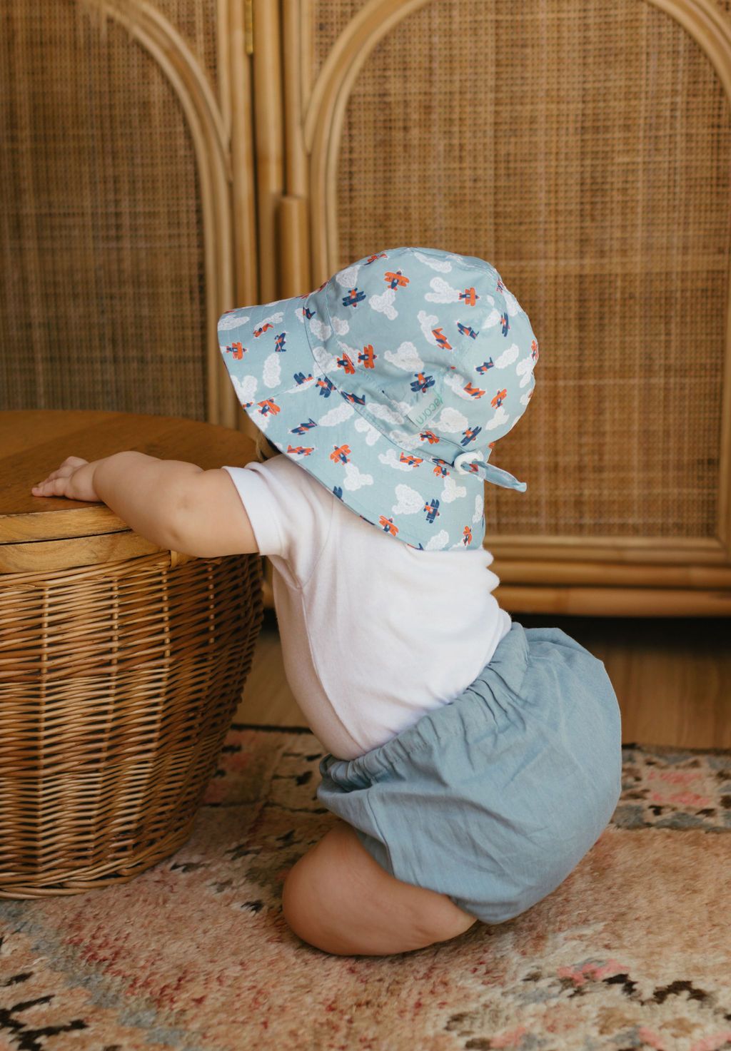 Sombrero de sol de ala ancha para bebé, elaborado en algodón 100% suave y transpirable, pensado para acompañar a los más pequeños en días de sol.
