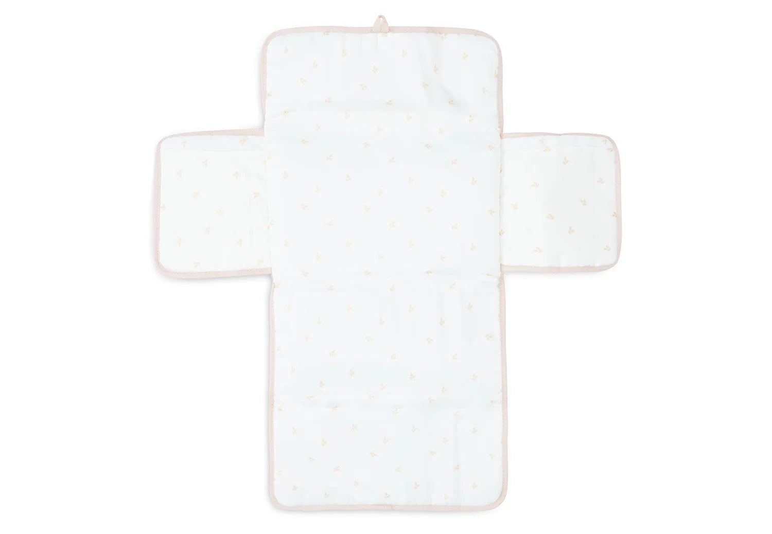 Fabricado con algodón 100% hidrofílico (muselina suave), el cambiador incluye compartimentos internos para pañales u otros accesorios, y se pliega fácilmente con un lazo decorativo. El interior removible está pensado para brindar confort al bebé en cada cambio.