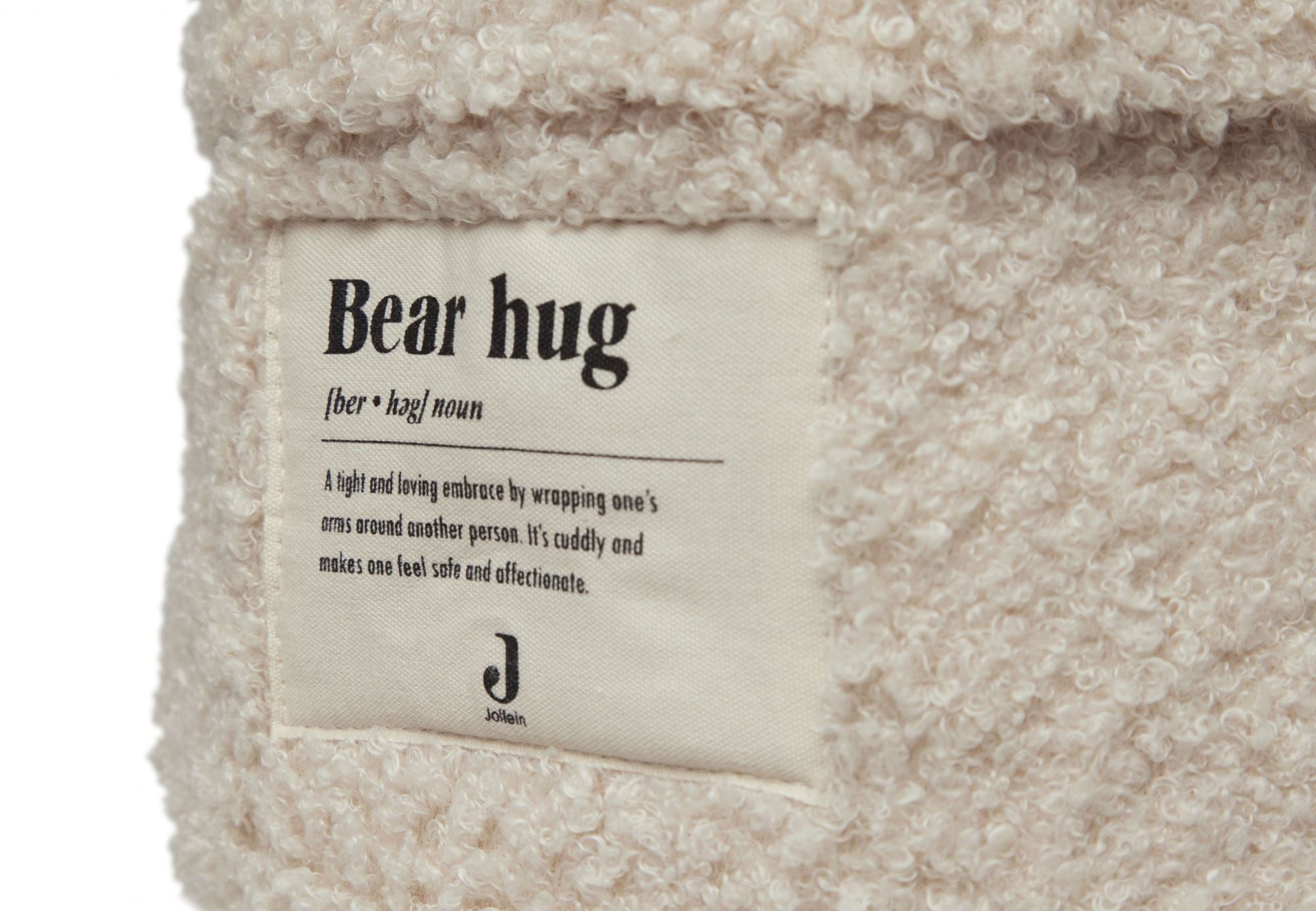 Su interior está forrado con poliuretano extraíble, lo que la hace resistente a derrames, ideal para productos de cuidado como aceites o pomadas. El diseño moderno y acogedor se completa con el divertido logo frontal “bear-hug”, que la convierte en un objeto decorativo encantador para el tocador, el cambiador o incluso el salón.